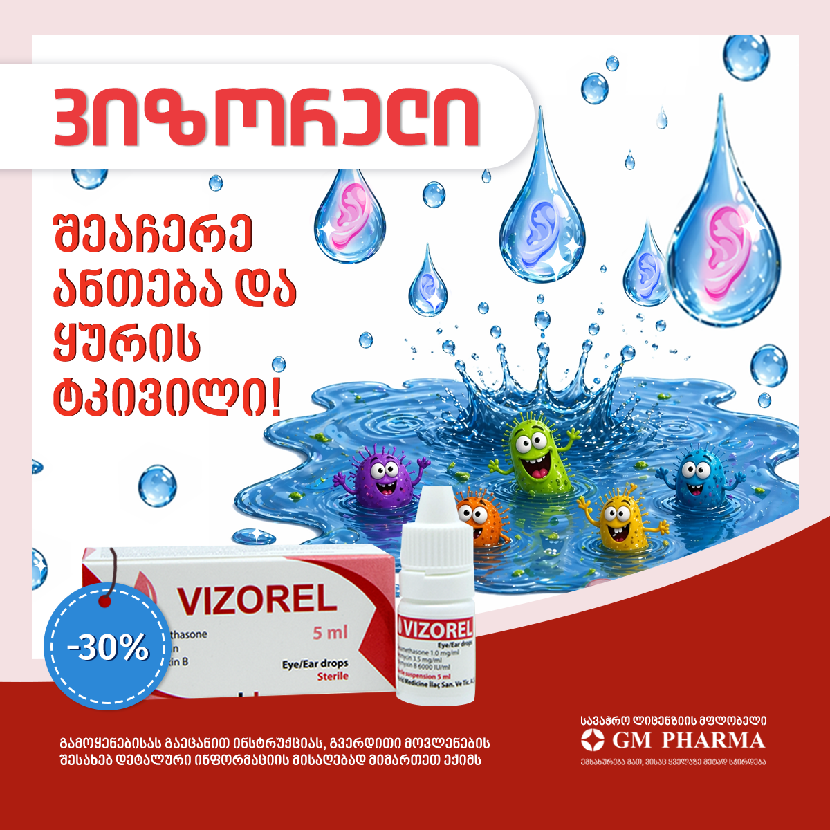 ერთ-ერთი ასეთი გამორჩეული საშუალებაა ვიზორელი. მისი სამკომპონენტიანი ფორმულა სპეციალურად იმისთვის შეიქმნა, რომ პრობლემაზე კომპლექსურად იმოქმედოს. ვიზორელი ხშირად გამოიყენება ისეთი მდგომარეობების დროს, როგორიცაა კონიუნქტივიტი, ბლეფარიტი, ასევე მწვავე და ქრონიკული გარეთა თუ შუა ოტიტების დროს. მასში შემავალი ორი ანტიბიოტიკი (ნეომიცინი და პოლიმიქსინი B) აჩერებს ბაქტერიების გამრავლებას და ანადგურებს ინფექციის კერას, ხოლო დექსამეტაზონი სწრაფად ხსნის შეშუპებას, წვას და იმ უსიამოვნო სიწითლეს, რომელიც თვალს ჯანსაღ იერს უკარგავს.