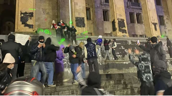 რუსთაველის გამზირზე მიმდინარე აქციაზე, პარლამენტის შენობის წინა მხარეს, რკინის ჯებირებთან ახლოს, ვითარება დაიძაბა. სპეცდანიშნულების რაზმი ჯებირების მიღმაა განლაგებული, ხოლო აქციის მონაწილეები მათი მიმართულებით ისვრიან სხვადასხვა სახის ნივთებს. აქციის მონაწილეებმა დაიწყეს პიროტექნიკის გამოყენება და ლაზერების მინათება.