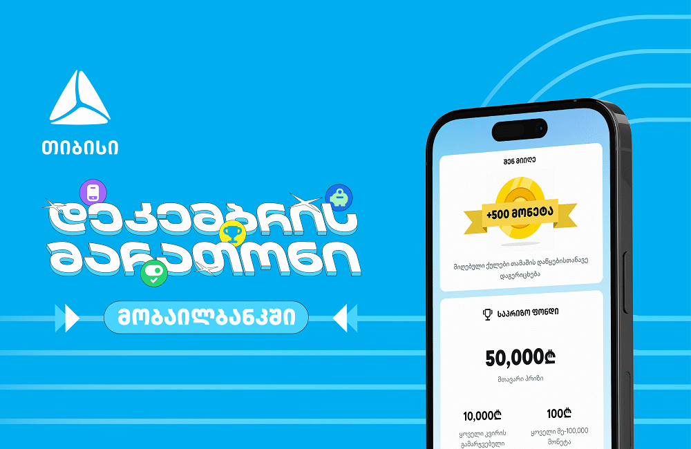 ჩაერთე დეკემბრის მარათონში, შეასრულე მისიები ყოველდღე, დააგროვე მონეტები და დასაჩუქრდი ფულადი პრიზით. კვირის განმავლობაში ყველაზე მეტი მონეტის მფლობელს 10 000 ლარი გადაეცემა.