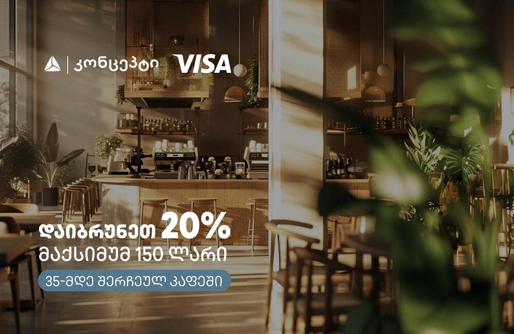 35-მდე შერჩეულ კაფეებსა და რესტორნებში, თიბისი კონცეპტის და Visa-ს შეთავაზება ნოემბრის თვის ბოლომდე გაგრძელდება.