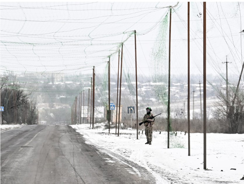 ჩვენ ხარკოვიდან იზიუმში მივემგზავრებით – ქალაქში, რომელიც დონბასის ისტორიულ ჭიშკარს წარმოადგენს. ქუჩაში ყინვაა – მინუს 18 გრადუსი. ავტომანქანიდან უკრაინის მინდორ-ველებს ვუყურებ – სწორს, ბრტყელს და თოვლით გადათეთრებულს. გზის პირას მუშები ორმოებს იღებენ ლითონის ბოძების მიწაში ჩასასობად, რომელთა სიმაღლე ორსართულიანი ავტობუსის სიმაღლეს აღემატება. ბოძები გზის ორივე მხარეს ყოველ 10 მეტრში დგას, მათ ერთმანეთთან, „კედლებისა და სახურავის“ სახით, მტკიცე პლასტიკური ბადეები აკავშირებთ, რომლებიც უკრაინელებს ევროპელმა მებადურებმა და ფერმერებმა აჩუქეს. ბადეები რუსული დრონების საწინააღმდეგოდ არის მიმართული. გზაზე რომ მივდივართ, თავს გამჭვირვალე პულსირებად დერეფანში თუ მდინარეში ვგრძნობთ.