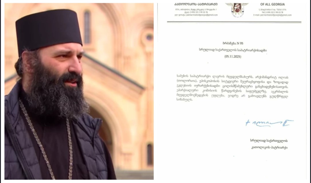 „სრულიად საქართველოს საპატრიარქოსადმი. სამების საპატრიარქო ლავრის მღვდელმსახურს, არქიმანდრიტ ილიას (თოლორაია), ეპისკოპოსის სიტყვიერი შეურაცხყოფისა და ზოგადად ეკლესიის იერარქებისადმი ცილისმწამებლური განცხადებებისათვის, ეპარქიალური კომისიის წარდგინების საფუძველზე, აეკრძალოს მღვდელმოქმედების უფლება, ვიდრე არ გამოავლენს გულწრფელ სინანულს”, – ნათქვამია კათოლიკოს-პატრიარქის ბრძანებაში.