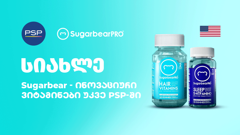 PSP-ს კიდევ ერთი განსაკუთრებული სიახლე ქართველ მომხმარებლებს ჯანსაღი ცხოვრებისთვის – ამერიკული კომპანია “შუგაბიარპროს” (SugarBearPro) -ს ვიტამინები თქვენი თმის, კანის, ფრჩხილის ჯანმრთელობის, ძილის ხარისხის გაუმჯობესების, იმუნიტეტის გაძლიერების, ქალის ჯანმრთელობისა და ენერგიის მოსამატებლად.
