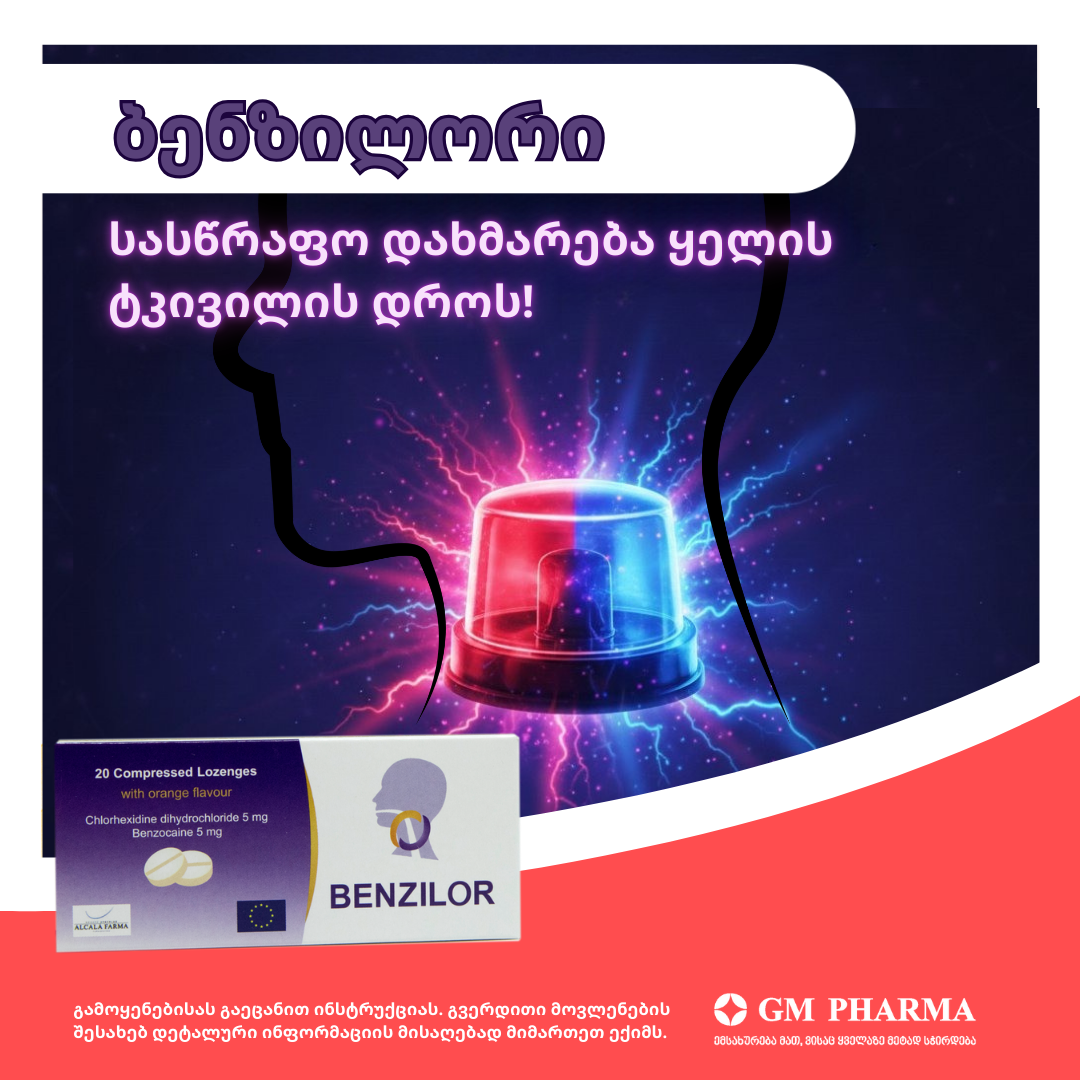 ყელის გაღიზიანება და ტკივილი გაციების ერთ-ერთი ყველაზე ხშირი და შემაწუხებელი სიმპტომია. ყლაპვის დროს დისკომფორტი, წვა და სიმშრალე ართულებს ყოველდღიურ ცხოვრებას, ამიტომ მნიშვნელოვანია დროულად შევამსუბუქოთ ანთება და დავიცვათ ლორწოვანი გარსი. ასეთ დროს, სიმპტომების ინტენსივობიდან გამომდინარე, განსაკუთრებით მნიშვნელოვანია სამკურნალო საშუალებების სწორად შერჩევა. როდესაც ყელის ტკივილი ძლიერია და ყლაპვა გართულებულია, ეფექტური არჩევანია ბენზილორი, რომელიც სწრაფად აყუჩებს ტკივილს, ამცირებს შეშუპებას და უზრუნველყოფს ადგილობრივ დამამშვიდებელ მოქმედებას. ბენზილორი თითო საწუწნი ტაბლეტი მიიღება 2-3 საათში ერთხელ, მისი მაქსიმალური დღიური დოზა 8 ტაბლეტია. ინიშნება მოზრდილებში და ბავშვებში 6 წლის ზევით.