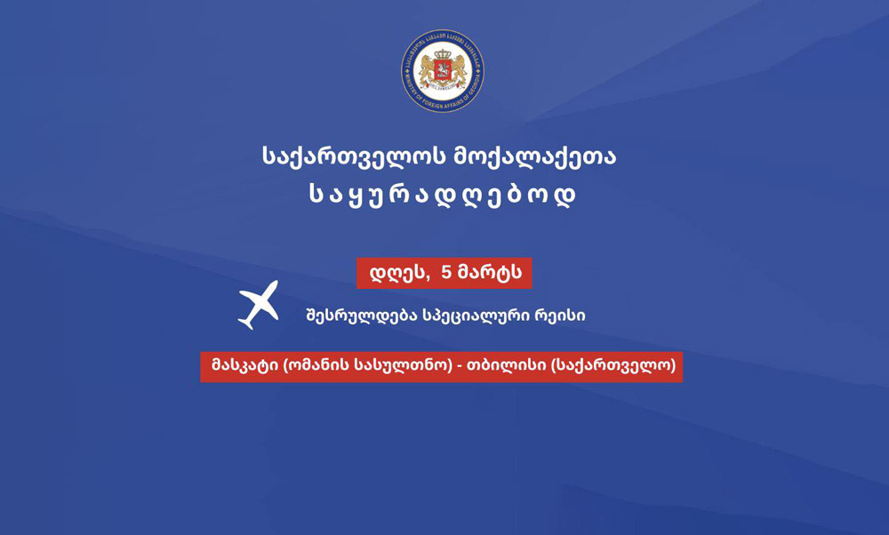 სპეციალური რეისი საქართველოს მოქალაქეებისთვის დღეს მასკატიდან შესრულდება