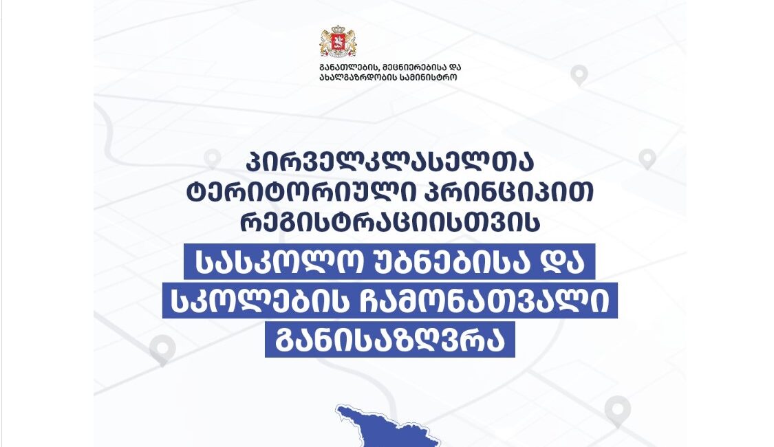 ტერიტორიული პრინციპი საპილოტე რეჟიმში 12 ქალაქში ამოქმედდება: თბილისი, ბათუმი, ქუთაისი, რუსთავი, ზუგდიდი, ამბროლაური, ოზურგეთი, ახალციხე, გორი, მცხეთა, თელავი და ფოთი. მისამართის განსაზღვრისას სსიპ განათლების მართვის საინფორმაციო სისტემა დაეყრდნობა სსიპ სახელმწიფო სერვისების განვითარების სააგენტოს მონაცემთა ბაზაში 2026 წლის 15 აპრილის მდგომარეობით დაფიქსირებულ მისამართებს“, – ნათქვამია სამინისტროს ინფორმაციაში.